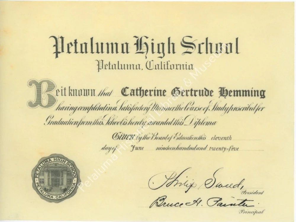 C: People, C: Schools, Y: 1920s, F: Documents Amy Hogan 1/2/24 C: People, C: Schools, Y: 1920s, F: Documents Amy Hogan 1/2/24 1925 Petaluma High School diploma Read More